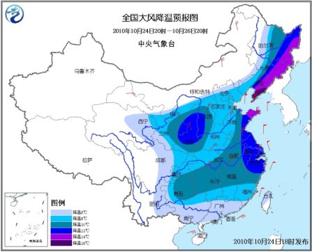 中新網(wǎng)10月24日電 隨著冷空氣的南下,在中東部盤踞了3~5天的大霧天氣將被逐漸驅(qū)散。中央氣象臺預(yù)計,未來三天,強(qiáng)冷空氣將快速南下影響西北地區(qū)東部、東北、華北、黃淮、江淮、江漢、江南、華南和西南地區(qū)東部,給這些地區(qū)帶來大風(fēng)、降溫、雨雪天氣。