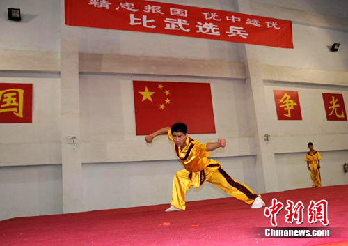 6歲就開始學(xué)藝、功夫過硬的劉彪率先勝出。劉彪曾先后參加了2008年北京奧運會開閉幕式,并多次與代表團一起到美國、日本等海外進行中華武術(shù)巡回交流。這次能被部隊選中,劉彪顯得特別高興,看到最后的綜合得分,興奮地告訴記者:“當(dāng)一名中國人民解放軍的特種兵是我一生的夢想,拿到的多個武術(shù)大賽獲獎證書抵不過部隊上發(fā)的士兵證。如果真能成為綠色方陣中的一員,我一定會更加努力學(xué)習(xí)、刻苦訓(xùn)練,爭取有一天能在國際特種兵比武中拿到獎牌,為國爭光!