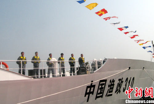 中國漁政310船入列后,即開始了它的首航。據(jù)透露,該船將開赴東海,前往釣魚島海域執(zhí)行護(hù)漁任務(wù)。