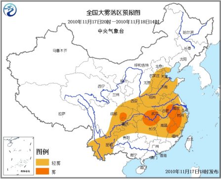 中新網(wǎng)11月17日電 中央氣象臺今日18時發(fā)布大霧藍色預(yù)警,江蘇西南部、安徽中南部、浙江西部、湖北東部、湖南東北部、江西東北部、福建北部、四川東部等地的部分地區(qū)有能見度不足1000米的霧,局部地區(qū)能見度不足500米。