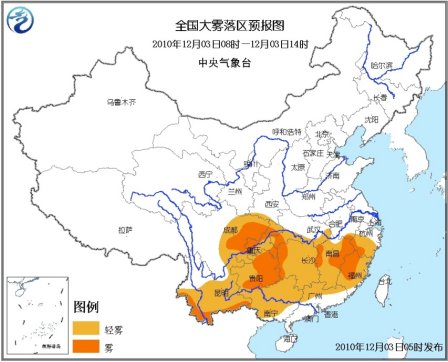 今天早晨到上午,西南地區(qū)東部和南部、江南大部、華南西部和北部等地有輕霧,其中,湖南西部、江西中北部、安徽南部、浙江西部、福建中西部、四川東部、重慶大部、貴州東部和南部、云南南部等地的部分地區(qū)有能見(jiàn)度不足1000米的霧,局部地區(qū)能見(jiàn)度不足200米。