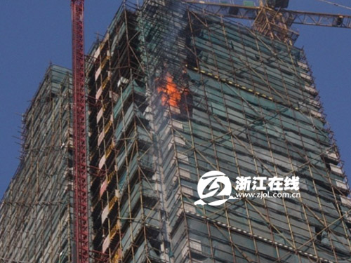 記者從寧波相關(guān)部門(mén)了解到,10日上午8時(shí)48分,在寧海學(xué)勉路的某在建高樓的24層發(fā)生火災(zāi)。大樓的東南角處火勢(shì)較旺,不斷向南面的腳手架上蔓延;馂(zāi)發(fā)生后,消防人員立刻趕到現(xiàn)場(chǎng)施救,采取垂直鋪設(shè)水帶的方法進(jìn)行內(nèi)攻,與此同時(shí),16米高噴消防車(chē)對(duì)起火層下層進(jìn)行冷卻,以防止火勢(shì)蔓延。30分鐘后,火勢(shì)得到控制。