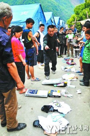 帶領(lǐng)李木香他們的,是蘆山城市建設(shè)投資公司的相關(guān)負責(zé)人袁杰,他很愧疚地向記者說:“村民們來幫忙是自愿的,沒有任何報酬,我們目前甚至連工作餐都沒辦法提供。他們走很遠過來,干完活兒再走回家做飯,他們其實都是災(zāi)民,卻反過來幫助別人!