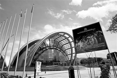 昨日,特立尼達和多巴哥首都西班牙港,國家表演藝術(shù)中心沐浴在陽光下,該項目由中國援建。新華社記者 張加揚 攝
