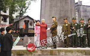 ▲白沙鎮(zhèn)情景再現(xiàn):江津籍抗日將領(lǐng)夏仲實跪母出征江津區(qū)委宣傳部供圖