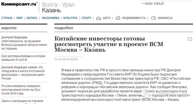 俄羅斯主要商業(yè)化報(bào)紙之一“生意人報(bào)”:中國參與俄羅斯的高鐵項(xiàng)目,這是李總理訪問期間最受關(guān)注的話題之一。如果連接中國、俄羅斯和哈薩克斯坦的高速鐵路網(wǎng)建設(shè)順利推進(jìn),將極大促進(jìn)“絲綢之路經(jīng)濟(jì)帶”戰(zhàn)略的實(shí)施。
