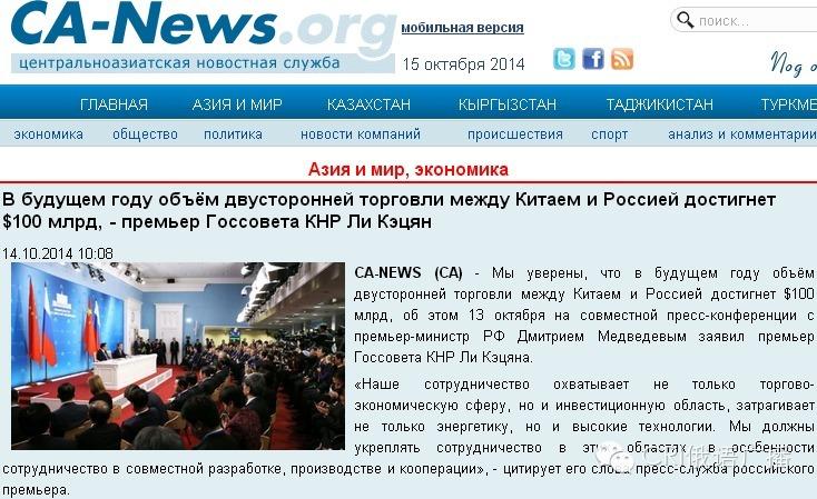中亞新聞社:中俄雙邊貿(mào)易額將達(dá)到1000億美元,而中俄合作對(duì)中亞地區(qū)的發(fā)展具有決定性影響,因此,中亞媒體格外關(guān)注兩大國的合作動(dòng)向。