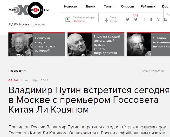 “莫斯科回聲”廣播電臺(tái):在會(huì)見李克強(qiáng)時(shí),普京表示,將在亞太經(jīng)合組織成員國領(lǐng)導(dǎo)人非正式會(huì)晤期間,與習(xí)近平主席在北京舉行會(huì)晤。在不到一個(gè)月的時(shí)間內(nèi),兩國高層領(lǐng)導(dǎo)先后會(huì)面,其重要意義不言而喻。