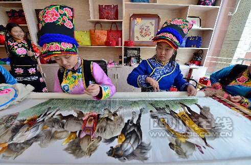 記者:你們的繡品是通過(guò)公司在市場(chǎng)銷售,你們準(zhǔn)備一直做這份工作嗎?