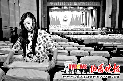 今日上午8時(shí),記者在本次大會(huì)的會(huì)場(chǎng)之一太原市工人文化宮看到,條幅已經(jīng)拉起,拱門(mén)也已豎起。工作人員正在更換白色座套,主席臺(tái)上已經(jīng)擺滿鮮花,準(zhǔn)備基本就緒。在委員的接待賓館之一政協(xié)賓館,會(huì)務(wù)、保衛(wèi)工作人員也已經(jīng)就位,部分代表正在辦理報(bào)到手續(xù)。委員張書(shū)慶告訴記者,從登記到入住只花了兩三分鐘,他準(zhǔn)備用剩下的時(shí)間再研究一下自己的提案。