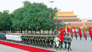 中國(guó)人民解放軍陸?杖妰x仗隊(duì)主要擔(dān)負(fù)迎送外國(guó)元首、政府首腦、軍隊(duì)高級(jí)將領(lǐng)及紀(jì)念、慶典等重大國(guó)事活動(dòng)的儀仗司禮任務(wù)。禮儀是一個(gè)國(guó)家文化的精華,軍人執(zhí)行的國(guó)禮、軍禮更是一種精粹。三軍儀仗隊(duì)建隊(duì)以來(lái),先后圓滿完成了外國(guó)首腦訪問(wèn),香港、澳門回歸政權(quán)交接儀式升國(guó)旗,奧運(yùn)會(huì)、殘奧會(huì)開閉幕式國(guó)旗升降、頒獎(jiǎng)等3000多次儀仗司禮任務(wù),被中央軍委授予“軍旅標(biāo)兵”榮譽(yù)稱號(hào),贏得了國(guó)內(nèi)外公眾和輿論的廣泛贊譽(yù)。朱民、劉桂利、張力攝影報(bào)道