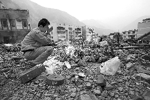 昨晚,北川縣委宣傳部部長(zhǎng)韓貴鈞說(shuō),之前縣里在任家坪半山腰上修建了一條水泥路,并在半山腰搭建三座觀景臺(tái),方便人祭拜。臘月二十三到年三十,是當(dāng)?shù)貍鹘y(tǒng)的祭拜親人的日子,為了滿(mǎn)足災(zāi)民祭拜要求,當(dāng)?shù)卣疀Q定,北川縣城向居民開(kāi)放。