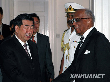 中新網(wǎng)2月18日電 據(jù)外交部網(wǎng)站消息,2月16日,巴巴多斯總督赫斯本茲在首都布里奇頓總督府會(huì)見了到訪的中國國務(wù)院副總理回良玉。