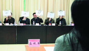 “通常的面試,每位考官的打分我們無法知道!弊蛉諈⒓用嬖嚨囊晃豢忌f。為進一步提高公開選拔面試的民主、公正和透明度,此次面試考官評分首次實行當(dāng)場亮分。