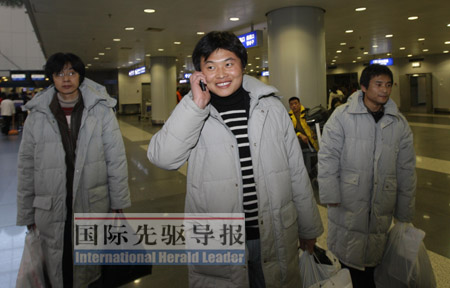 2月25日上午10點(diǎn),剛抵達(dá)北京首都國際機(jī)場,這位獲救中國船員做的第一件事就是打電話給爸媽報(bào)平安,站在他身邊的是另外兩位獲救船員劉峰、宋進(jìn)。短暫的停留后,三位歸心似箭的山東老鄉(xiāng)又搭上飛往青島的航班。