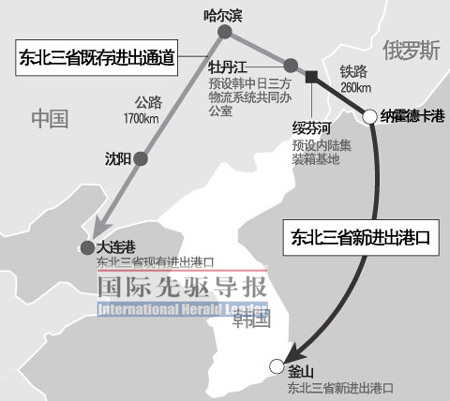 這是東北最大最繁忙的航線。韓國《朝鮮日報(bào)》近日報(bào)道,中國、韓國和俄羅斯正聯(lián)手構(gòu)建新的“中韓俄三角物流系統(tǒng)”。一座20萬平方米的內(nèi)陸集裝箱貨場將在黑龍江省綏芬河市落成,中國北方的進(jìn)出口貨物將悉數(shù)集中在這里,然后用鐵路運(yùn)往俄羅斯納霍德卡港,通過海運(yùn)運(yùn)到韓國釜山港。