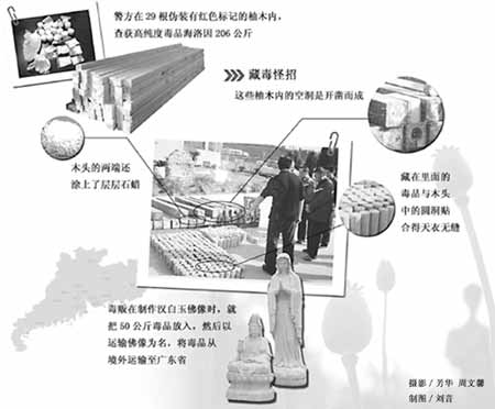 2003年7月,馬國祥以每公斤13萬元的價(jià)格從“阿強(qiáng)”手中購買藏在漢白玉佛像里的海洛因50公斤。據(jù)了解,“阿強(qiáng)”等人在制作漢白玉佛像時(shí),就把毒品放入,然后以運(yùn)輸佛像為名,將毒品從境外運(yùn)輸至廣東省。