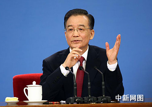 3月13日上午,溫家寶總理舉行中外記者招待會(huì),在開場(chǎng)白中引用自己在紐約講過(guò)的一句話:“信心要比黃金和貨幣還要重要”。 中新社發(fā) 盛佳鵬 攝
