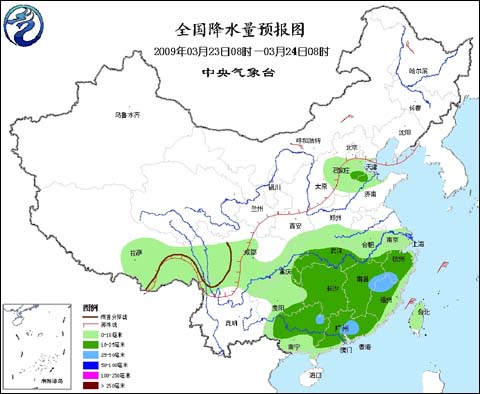 中新網(wǎng)3月23日電 據(jù)中國(guó)氣象局網(wǎng)站消息,中央氣象臺(tái)2009年3月23日06時(shí)發(fā)布未來三天天氣預(yù)報(bào):蒙古地區(qū)不斷有冷空氣東移南下影響我國(guó)中東部,未來三天,西北地區(qū)北部和東部、內(nèi)蒙古大部、東北、華北、黃淮等地將先后有4~6級(jí)偏北或偏東風(fēng),24日-25日,上述地區(qū)氣溫將下降6~8℃,局部地區(qū)降溫可超過10℃。我國(guó)東部海區(qū)將先后有6~8級(jí)東北風(fēng)。