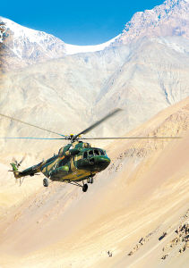 天山山谷,數(shù)十架直升機(jī)鐵翼飛旋,巨大的轟鳴聲幾乎要把耳膜撕裂。駕駛艙內(nèi),機(jī)長王厚國在地圖上隨機(jī)標(biāo)定了此次飛行訓(xùn)練的第一個(gè)野外起降點(diǎn)。他說:“過去組織野外起降課目訓(xùn)練前,都要事先勘察選點(diǎn),在易于起降的場地上插上紅旗,再告知精確的經(jīng)緯度,飛行員據(jù)此就可以飛抵起降地點(diǎn)。如今,新大綱打破了這個(gè)規(guī)矩,既不事先選點(diǎn)也不做任何標(biāo)記,讓飛行員獨(dú)立搜索選擇起降點(diǎn)。”正說著,飛機(jī)抵達(dá)山谷深處一個(gè)陌生地域,巨大的旋翼卷起狂風(fēng),吹得積雪四處飛濺。片刻,直升機(jī)再次騰空而起,實(shí)施第二個(gè)訓(xùn)練課目:超低空突襲。