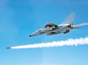 3月中旬,某艦隊(duì)航空兵飛行團(tuán)數(shù)架新型“飛豹”戰(zhàn)機(jī)急速而起,穿云破霧直撲作戰(zhàn)海域。發(fā)現(xiàn)目標(biāo),該飛行團(tuán)團(tuán)長李軍迅速鎖定目標(biāo),按下發(fā)射按鈕,導(dǎo)彈如銀空利箭,直奔“敵”艦……