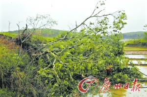 昨日凌晨,河源市東源縣順天鎮(zhèn)楓木、橫塘等5個(gè)山村不同程度地遭受到龍卷風(fēng)、冰雹的突然襲擊,導(dǎo)致當(dāng)?shù)卮笃r(nóng)田受災(zāi),數(shù)千株板栗樹(shù)被龍卷風(fēng)摧倒,據(jù)當(dāng)?shù)叵嚓P(guān)部門昨日下午統(tǒng)計(jì),直接經(jīng)濟(jì)損失估計(jì)逾達(dá)860多萬(wàn)元,所幸未造成人員傷亡。