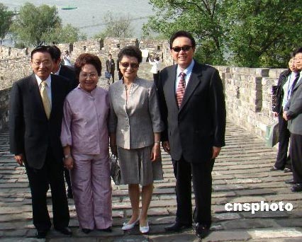 江丙坤認(rèn)真聽取了博物館解說員的介紹,對(duì)這一世界最長(zhǎng)的城墻的偉大工程贊嘆有加。他和夫人還與陳云林及夫人一起,在臺(tái)城城墻上合影留念。