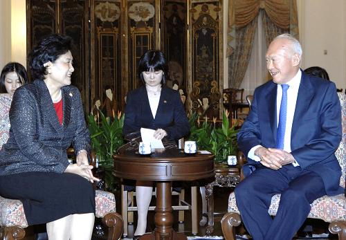 中新網(wǎng)4月26日電 正在新加坡訪問的中國國務(wù)委員劉延東25日在新加坡總統(tǒng)府會見了新加坡內(nèi)閣資政李光耀。