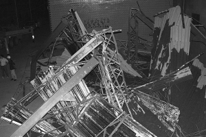 發(fā)生事故的是位于虹星路185弄15號(hào)上海遠(yuǎn)達(dá)塑料制品有限公司廠區(qū)內(nèi)一幢占地約300平方米的在建廠房。記者在現(xiàn)場看到,廠房屬于彩鋼板結(jié)構(gòu),四周鋼結(jié)構(gòu)的支架已全部扭曲斷裂,地上血跡斑斑。一輛伸開吊臂的水泥灌漿車停在一邊。