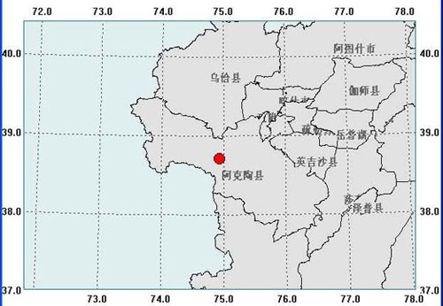 據(jù)測定,此次地震震中位于北緯 38.7°, 東經(jīng) 74.9°。目前還沒有人員傷亡和財產(chǎn)損失的報告。