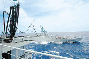 踏平怒海,“青海湖”艦與“蘭州”艦、“昆侖山”艦、“巢湖”艦劈浪前進(jìn)。記者看到,在自動(dòng)控制裝置的作用下,凌空飛架的鋼索隨著艦艇搖擺伸縮自如。為這3艘戰(zhàn)艦進(jìn)行干貨補(bǔ)給后,“青海湖”艦又分別為“常德”艦、“湘潭”艦進(jìn)行了油水補(bǔ)給。演練歷時(shí)7小時(shí)53分鐘,先后完成了食品補(bǔ)給、醫(yī)療救護(hù)、海上救生、彈藥補(bǔ)充等課目,全面錘煉了支援艦與戰(zhàn)斗艦之間的相互配合能力。