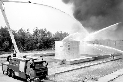 15時(shí)15分,就在圍剿接近尾聲時(shí),現(xiàn)場突然出現(xiàn)意外,一名殘余“恐怖分子”引燃身上所攜帶炸藥,將廠區(qū)內(nèi)兩個(gè)化工原料儲(chǔ)存罐炸毀,造成大量有毒化學(xué)氣體泄漏。廠區(qū)內(nèi)頓時(shí)濃煙滾滾,火光沖天。面對(duì)緊急情況,消防力量馬上出擊,展開滅火、化學(xué)品罐堵漏、毒氣源稀釋等工作。同時(shí)環(huán)保、氣象和衛(wèi)生力量也馬上進(jìn)行空氣監(jiān)測、中毒人員緊急救治等工作。大約半小時(shí)后,人質(zhì)和中毒人員全部得到緊急救治,廠區(qū)周圍有毒氣體濃度也降到安全值以內(nèi),周邊地區(qū)和首都北京的安全得到了保障。演習(xí)結(jié)束。