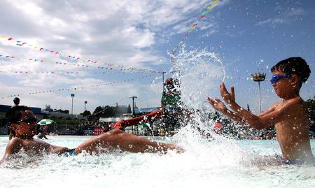 昨天,邁入二十四節(jié)氣里的“夏至”后,老天爺就不客氣起來,驕陽似火,灼燒著大家的皮膚。面對滾滾熱浪來“襲”,蓉城市民自然也有對付的方法。水果店的西瓜賣得好、寫字間里空調(diào)風扇一刻不停,就連猛追灣游泳池也比周末熱鬧,防暑消暑,是這幾天大家要討論的話題!霸缟献畹蜌鉁乇平23℃,基數(shù)太高,預計成都市區(qū)日平均氣溫在28℃—29℃。”據(jù)省專業(yè)氣象臺監(jiān)測:在高熱能量的“燒烤”下,在成都分布的各大自動監(jiān)測站里,下午2時的氣溫均顯示為35℃左右,比前日上升了4℃。其中,蒲江、邛崍、新津、雙流等地自動監(jiān)測站的“14時氣溫”顯示為37℃以上,是6月以來最熱的一天!俺啥茧m熱,但還不是四川最熱的地方。”省專業(yè)氣象臺預報部主任羅禮洪表示,翻看昨日的氣象記錄,盆地西部、北部以多云到晴天氣為主,午后最高氣溫大部地區(qū)達到34℃—36℃;綿陽、德陽、廣元等地震災區(qū)14時氣溫高達38℃,比成都的高溫來得更加猛烈。