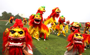 曾在北京奧運(yùn)會(huì)開幕式前文藝表演中第一個(gè)登臺(tái)亮相的滄州劉吉舞獅團(tuán),此次又將在國慶聯(lián)歡晚會(huì)上登臺(tái)獻(xiàn)藝。記者獲悉,從7月初接到任務(wù),劉吉舞獅團(tuán)就加緊訓(xùn)練。最后確定以大型獅子舞“騰飛中國”進(jìn)京表演。日前,舞獅團(tuán)已經(jīng)進(jìn)京按照張藝謀總導(dǎo)演的指揮進(jìn)行統(tǒng)一彩排!