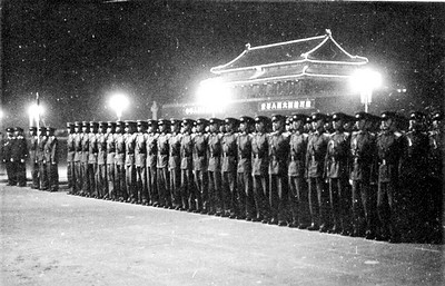 受檢的時(shí)刻終于來(lái)臨。1958年9月30日下午,我們“湘軍方隊(duì)”停止了訓(xùn)練,轉(zhuǎn)入受閱時(shí)的著裝和衛(wèi)生準(zhǔn)備,熨衣服、擦皮鞋、縫襯肩、釘領(lǐng)花、安肩章、洗澡、理發(fā)、刮胡須忙個(gè)不停。下午5時(shí),大家都穿上受閱著裝列隊(duì)檢查,全隊(duì)人員配帶的肩花都是中尉或上尉,這些平時(shí)曬得黑油油顯得有些老成粗放的“老兵”,一下子變得年青、標(biāo)致、威武了;在激動(dòng)心情的催促和新式著裝的反光照耀下,每個(gè)人的臉面變得白中帶紅、可親可愛(ài)了。