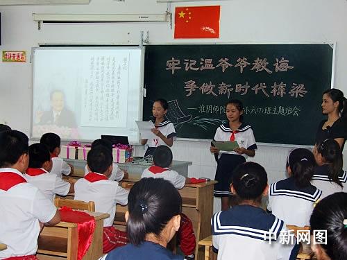 主題班會上,淮陰師范學院第一附屬小學的學生們還向淮安全市的少先隊員發(fā)出了“牢記溫爺爺?shù)慕虒,像周總理一樣從小樹立‘為中華之崛起而讀書’遠大志向”的倡議。淮安市委書記劉永忠、淮安市委常委、宣傳部長劉希平等領導參加了主題班會,并向孩子們贈送圖書,鼓勵孩子們牢記溫總理的教導,好好學習,將來為家鄉(xiāng)的建設做貢獻。