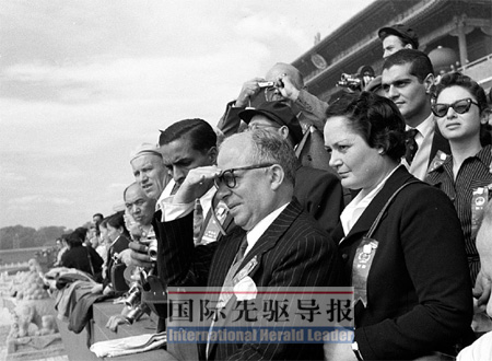 “在北京舉行的歷時(shí)數(shù)小時(shí)不絕的游行代表中國(guó)的生活和成就的縮影,行進(jìn)時(shí)高呼口號(hào),標(biāo)語(yǔ)牌上寫(xiě)著百分比數(shù)字!睍r(shí)任英國(guó)《每日快報(bào)》記者多布森在文中寫(xiě)道:“這時(shí)候,儀仗隊(duì)正步走過(guò)。但是我覺(jué)得游行的這一部分相當(dāng)枯燥無(wú)味,我在許許多多共產(chǎn)黨首都里看到過(guò)同樣的坦克和大炮走過(guò)!