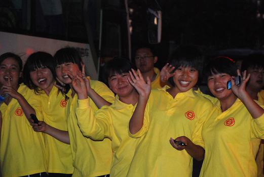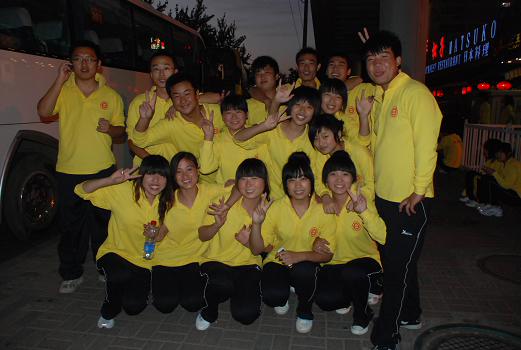 一陣快樂的笑聲引起了記者的注意,原來是一群年輕人在相互用手機拍照留念。他們是來自北京市汽車工業(yè)高級技術學校的25名學生。參加大型活動對他們來說一點都不陌生,因為他們經歷過今年8月8日在“鳥巢”及奧林匹克景觀大道舉行的“三萬人演太極破世界紀錄”的活動!8月8日的活動結束后,我們就開始準備國慶舞蹈了。大家用了3、4天就學會了!辈贿^接下來,同學們放棄暑假,用了整整一個月來精益求精。這些90后、80后的大孩子們開朗熱情,對于第一次實地演練檢驗一個多月來的努力成果顯得信心十足興奮不已,他們說,雖然在室外頂著日頭訓練時挺辛苦,但是大家都覺得“特別自豪,特別快樂”,因為“我們能代表北京、代表中國向全世界展示我們國家的繁榮昌盛,這是非常難得的經歷”。(記者 劉莉)