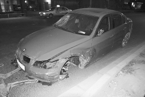 在滬南路陳春路口,這輛“瘸了腿”的牌號(hào)為滬G16281的紅色寶馬轎車(chē)仍停在路邊,右前擋風(fēng)玻璃已碎成網(wǎng)狀,據(jù)說(shuō)這是騎車(chē)人被撞后彈到擋風(fēng)玻璃上所留下的。車(chē)的左前輪已不見(jiàn)蹤影……幾名目擊者回憶起事發(fā)經(jīng)過(guò):由于滬南路正在拓寬,相向行駛的車(chē)輛公用北向南車(chē)道,地上劃有清晰的區(qū)分標(biāo)識(shí)。誰(shuí)料,這輛本應(yīng)是由南向北行駛的寶馬車(chē),竟駛上了北向南車(chē)道上,“當(dāng)時(shí)‘寶馬’速度很快,直接就把那輛正常行駛的電動(dòng)車(chē)撞了!睂汃R車(chē)將騎車(chē)人撞飛后,并未停車(chē),而是繼續(xù)逆向前行,又與一輛相向行駛的銀色帕薩特轎車(chē)發(fā)生碰撞。