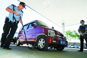 車子駛?cè)霗z查站后,絕大多數(shù)司機(jī)會(huì)立即遞出駕照、行駛本和身份證。如果車輛和人員沒有任何可疑之處,檢查時(shí)間極為短暫。如民警認(rèn)為必要,會(huì)要求司機(jī)下車,打開后備箱,或者使用手持安檢儀、身份證識(shí)別儀、車底檢查鏡,對(duì)車輛和人員進(jìn)行較細(xì)致的檢查!鞍讖R檢查站每天可檢查17000輛車,6萬多人!睓z查站站長(zhǎng)齊躍警官告訴記者,當(dāng)發(fā)現(xiàn)有可疑車輛,民警會(huì)要求該車駛出車道,在旁邊空?qǐng)錾蠙z查。發(fā)現(xiàn)可疑人員或需要重點(diǎn)檢查的人員之后,會(huì)將他們帶入候檢大廳,使用大廳里的安檢門、X光機(jī)等設(shè)備進(jìn)行檢查。