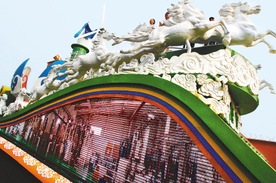 梁輝告訴記者,廣東省的制作團(tuán)隊(duì)一共有上千人,除旅游局外,文化廳、公安廳、質(zhì)監(jiān)局等相關(guān)政府部門和多家設(shè)計(jì)制作公司參與。從政府部門到設(shè)計(jì)制作公司,參與人員投入了全部的精力和智慧。因?yàn)榇蠹艺f,彩車代表了廣東形象,制作彩車是一項(xiàng)光榮任務(wù),要力爭體現(xiàn)廣東精神。
