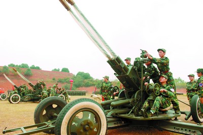 芙蓉區(qū)女子高炮分隊是會操現(xiàn)場一道亮麗的風景線。隨著一陣響亮整齊的口號聲,90名高炮分隊的女兵以最快速度將6臺高炮推進至戰(zhàn)斗位置。隨著指揮員“放列”的命令,各個女炮手迅速找準各自位置,打扛起螺桿,使火炮輪胎離地,行軍狀態(tài)的火炮立刻轉為戰(zhàn)斗狀態(tài)。緊接著,一炮手打動方向機,將火炮轉到指揮員所指方向,二炮手將火炮打到規(guī)定的射擊高度,三炮手裝上目標距離,四炮手裝上目標航速和航向,五、六炮手準備裝填炮彈。女兵們颯爽的英姿給大家留下了深刻的印象。(記者 彭瑋蔚 通訊員 付明 黃岡 周坤)