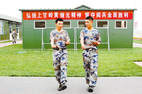 在方隊(duì),易治安和武龍相處時(shí)間最長(zhǎng),訓(xùn)在一起、吃在一桌、睡在一屋,基本上形影不離。久而久之,彼此心領(lǐng)神會(huì)。武龍說(shuō):“我們倆散步其實(shí)都是在以步代車(chē)進(jìn)行模擬訓(xùn)練。易班長(zhǎng)往往會(huì)突然間加大步子,暗示我‘加速’,我就會(huì)在最短的時(shí)間內(nèi)跟上。他習(xí)慣把訓(xùn)練中的配合帶到生活中讓我體會(huì),從而達(dá)到密切協(xié)同!闭f(shuō)起他倆的默契,同室戰(zhàn)友笑著說(shuō):“他們倆睡上下鋪,晚上打呼嚕都一致!”