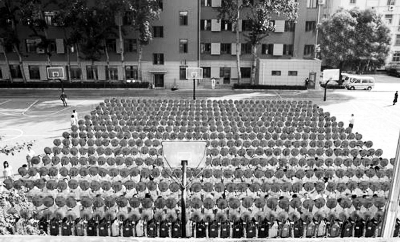 在每次大的集體演練前,師生們都要面對(duì)學(xué)校珍藏的曾經(jīng)在天安門廣場(chǎng)高高飄揚(yáng)的五星紅旗高唱國(guó)歌,莊嚴(yán)宣誓。此外,學(xué)校利用誓師大會(huì)、動(dòng)員會(huì)、表彰會(huì)對(duì)學(xué)生加以正確引導(dǎo);利用家長(zhǎng)會(huì)、校通訊平臺(tái)爭(zhēng)取家長(zhǎng)的理解與配合;組織學(xué)生集體觀看電影《大閱兵》,給學(xué)生以精神支持;讓學(xué)生每天記錄訓(xùn)練日記,留給學(xué)生難得的人生財(cái)富……“祖國(guó)就在我心中”、“我與祖國(guó)共奮進(jìn)”成為了艱苦訓(xùn)練過程中學(xué)生發(fā)自心底的吶喊。