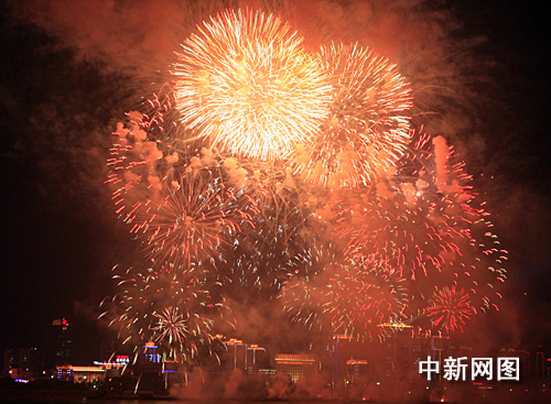 金閃變色、銀波變紅、金椰變紫、菊綠變黃、銀魚變藍(lán)、超級(jí)錦冠等,多情的禮花在江城的夜空傾情綻放;中國光谷、中國車都、十里鋼城、兩型社會(huì)等,勤勞的武漢人民正書寫華章。