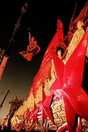 昨夜,天津彩車的工作人員正在進(jìn)行拆解作業(yè),旁邊北京彩車的拆解即將開始。昨晚22時(shí)許,天安門廣場(chǎng),60輛彩車的燈光依次熄滅,游人漸散。彩車轉(zhuǎn)場(chǎng)工作全面啟動(dòng)。至今晨5時(shí),國(guó)慶60周年群眾游行中的60輛彩車將全部轉(zhuǎn)移到朝陽(yáng)體育中心。相關(guān)負(fù)責(zé)人介紹說,其中33輛彩車將返回原省份。本報(bào)記者 周曉東 攝