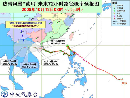 預(yù)計,“芭瑪”將以每小時15公里左右的速度繼續(xù)向西偏北方向移動,強度略有減弱,穿過海南島后,將于12日晚上到13日凌晨進入北部灣海面。
