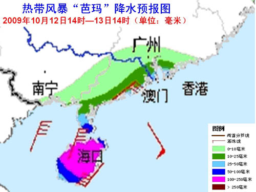 受“芭瑪”影響,12日中午到13日中午,南海西北部海域、瓊州海峽、北部灣、海南沿海、廣東中西部沿海、廣西沿海將有6-8級大風(fēng),部分海域或地區(qū)陣風(fēng)可達9-10級;海南大部有大雨或暴雨,海南東部的部分地區(qū)有大暴雨。