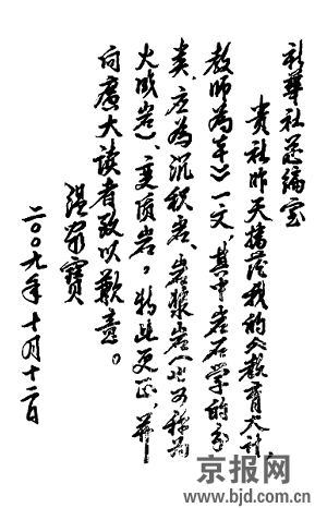 今年教師節(jié)前夕,溫家寶總理到北京市第三十五中學(xué)看望師生。上午聽(tīng)了5節(jié)課,下午同北京市部分中小學(xué)教師座談。下面是溫總理更正信所涉及的講話內(nèi)容: