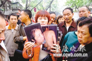 交警暫時將公路封道,圍觀人群將法院大門圍得水泄不通。9時40分,兩輛交警警車前后開道,3輛法警車夾在當(dāng)中,5輛警車單獨押解著謝才萍回看守所。5分鐘后,其他被告人才被警車押解回看守所。